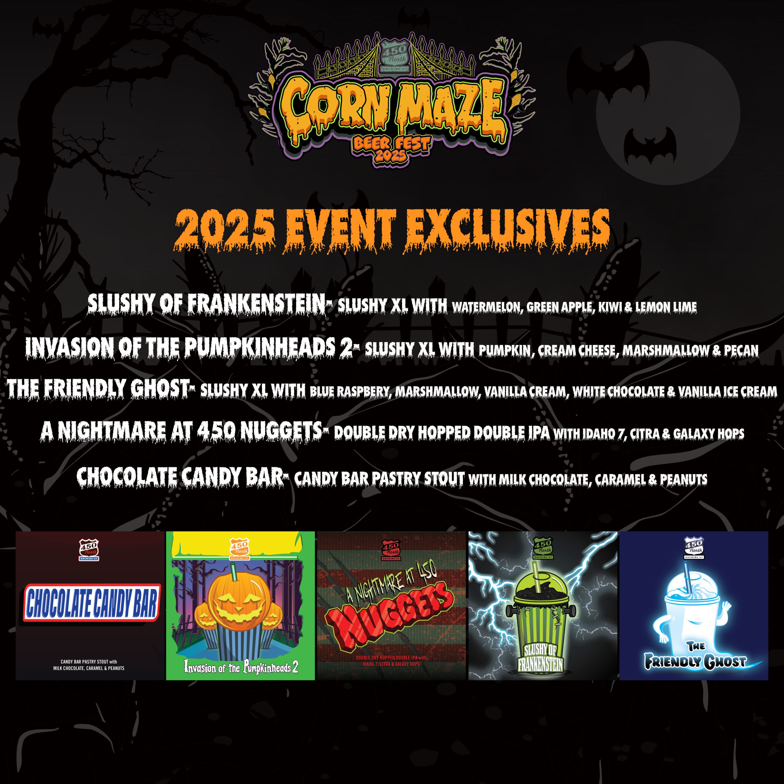 Follow our Corn Maze Beer Fest page on Facebook and 450 North Brewing Co. on Facebook and Instagram for additional details.